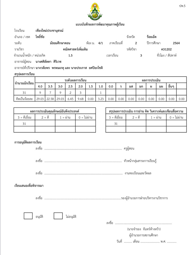 ให้เป็นปัจจุบันเพื่อใช้ในการส่งเสริมและสนับสนุนการเรียนรู้และพัฒนาคุณภาพของผู้เรียนให้เกิดประโยชน์สูงสุดในการจัดกิจกรรมการเรียนการสอนในชั้นเรียนอาทิเช่น ข้อมูลการวิเคราะห์ผู้เรียนเป็นรายบุคคล การจัดทำระบบดูแลช่วยเหลือนักเรียน งานธุรการในห้องเรียน แบบปพ.ทะเบียนแสดงผลการเรียน อื่นๆ เป็นต้น
